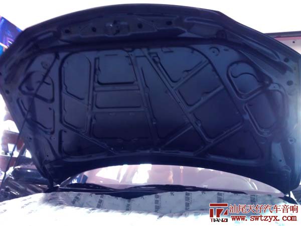 引擎盖隔音最高可以降低噪音2DB,而且还可以阻隔发动机的高温热量哦!先贴上一层蓝金刚,可以减少发动机振动所带来的噪音,之后再贴上一层引擎盖覆膜就完美了