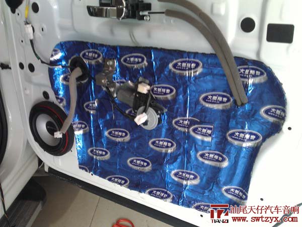 隔音材料选用了国内最好的隔音止震材料大能、 首先为车门做上第一层隔音