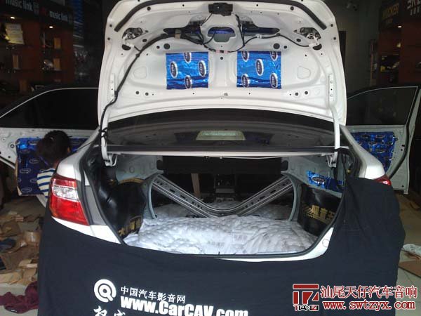 后尾箱是车内噪音来源的关键部位之一,大量的共振、共鸣、轮胎摩擦,燥热被源源不断的传到车内,对这个部位进行隔音处理,能够有效提升钣金强度,使车身更加紧固,密封不必要的孔洞,有效解决共鸣噪音的来回发射放大,获得更多、精确、坚实的超重低音。