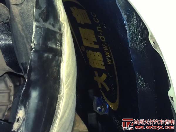 翼子板做汽车隔音,主要是为了隔绝路噪声和轮胎的摩擦声,特别是走高速的时候,这一块的隔音就显得尤为重要,做完隔音之后,能有效降低路噪和摩擦声,给您一个安静、安全的乘车环境。