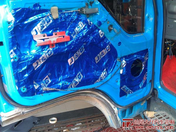 货车与小车也是同样的结构,首先把车门内外板做上隔音才可以给车门的喇叭提供工作环境