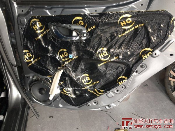 安装喇叭之前我们先把车门给处理好,四门隔音采用德国HQ隔音材料,完成之后可以看到车门板内部形成一个很好的密闭空间,不仅钣金的震动会大幅度降低,通过车门孔洞传递的噪音,噪热灰尘也大幅度降低,当然还有的就是汽车扬声器的音质和升压级也大幅度提升。同时G-661中低音喇叭也做好防水措施安装在车门上。